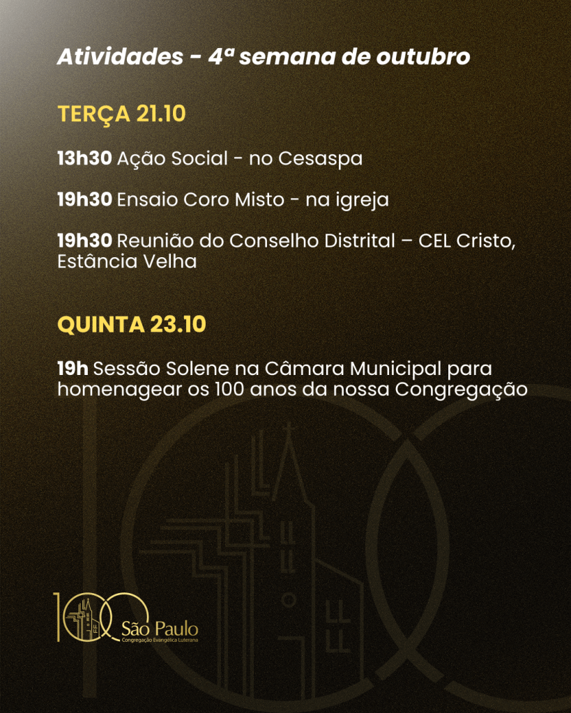 SEMANAL – 4ª SEMANA DE OUTUBRO