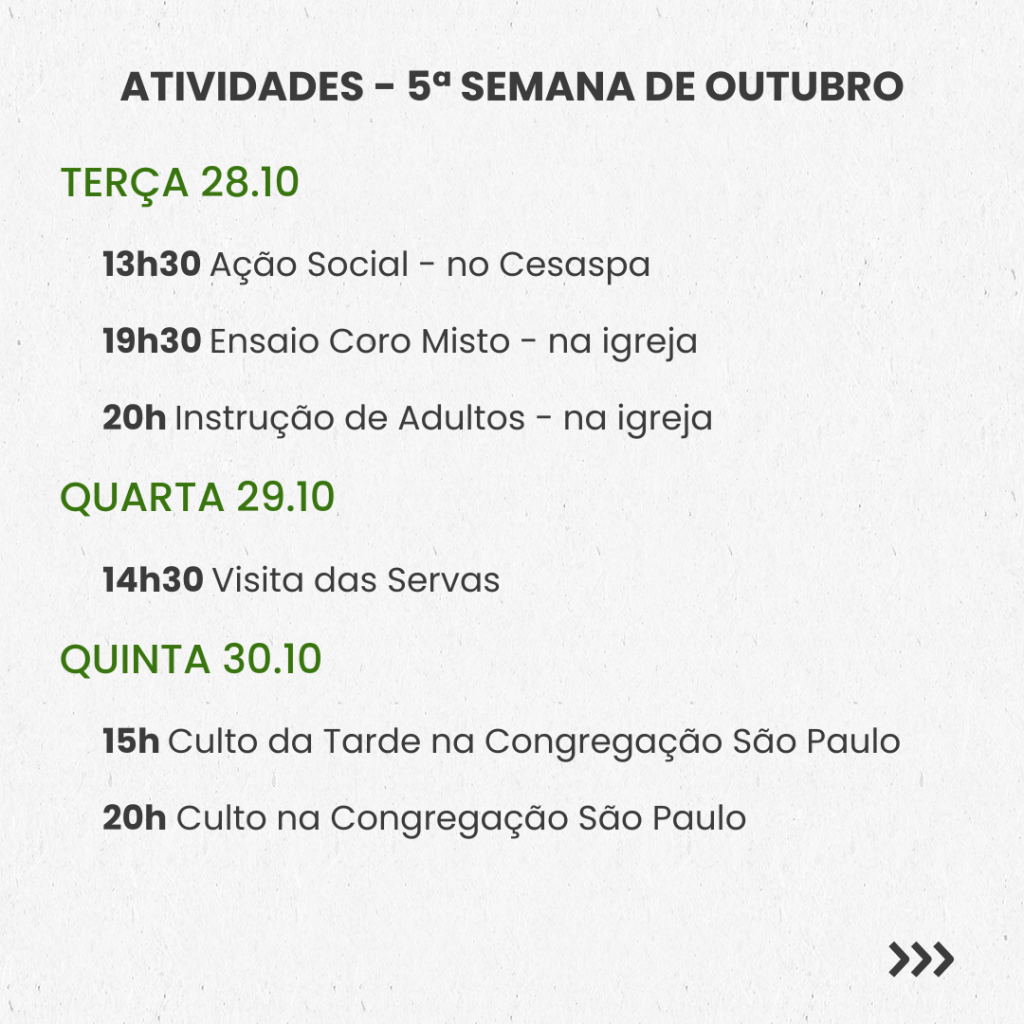 SEMANAL – 5ª SEMANA DE OUTUBRO