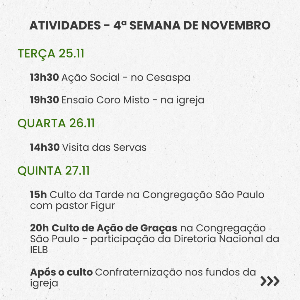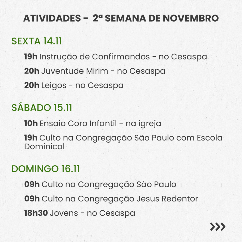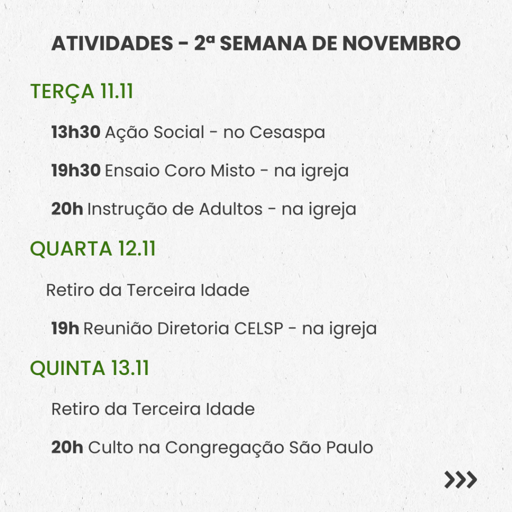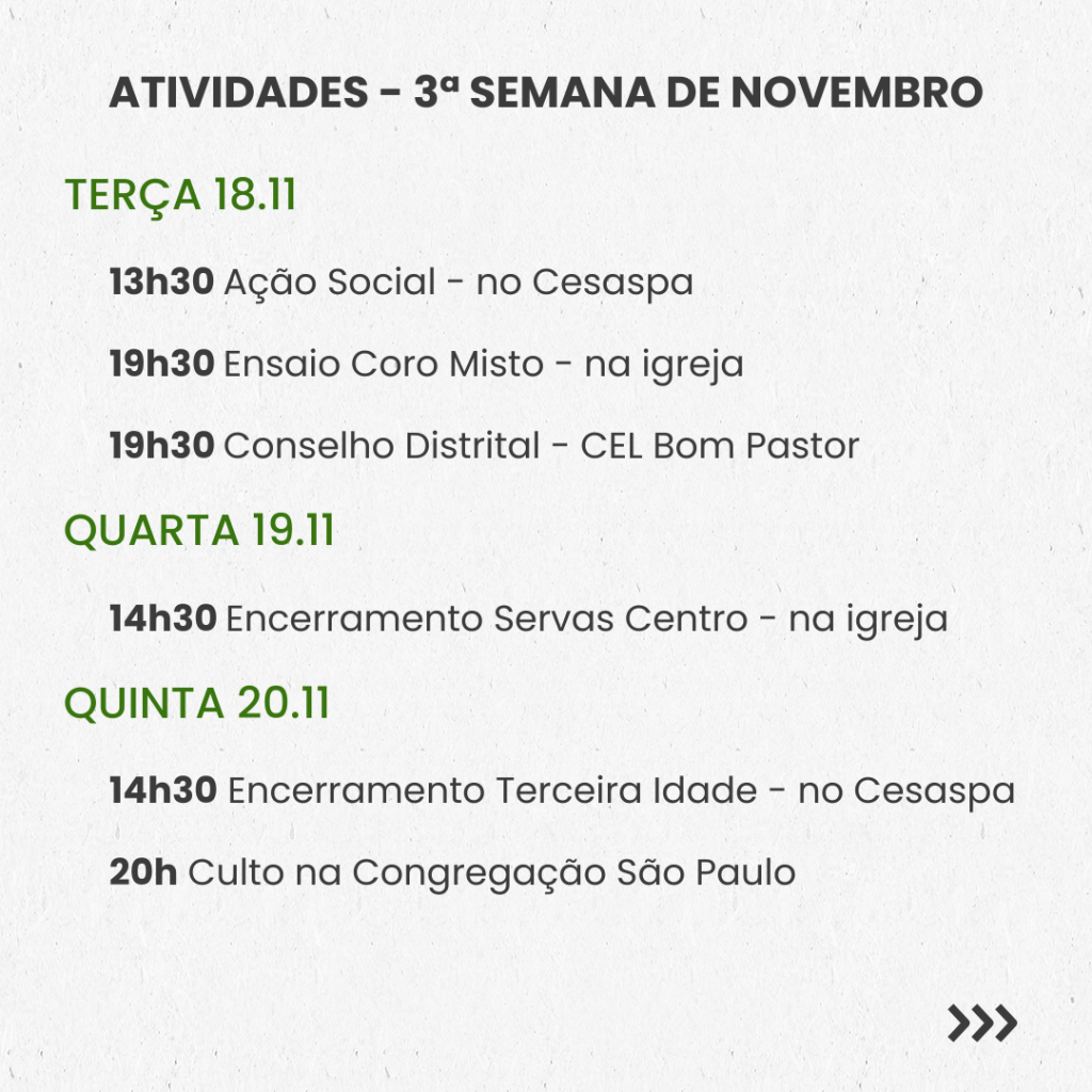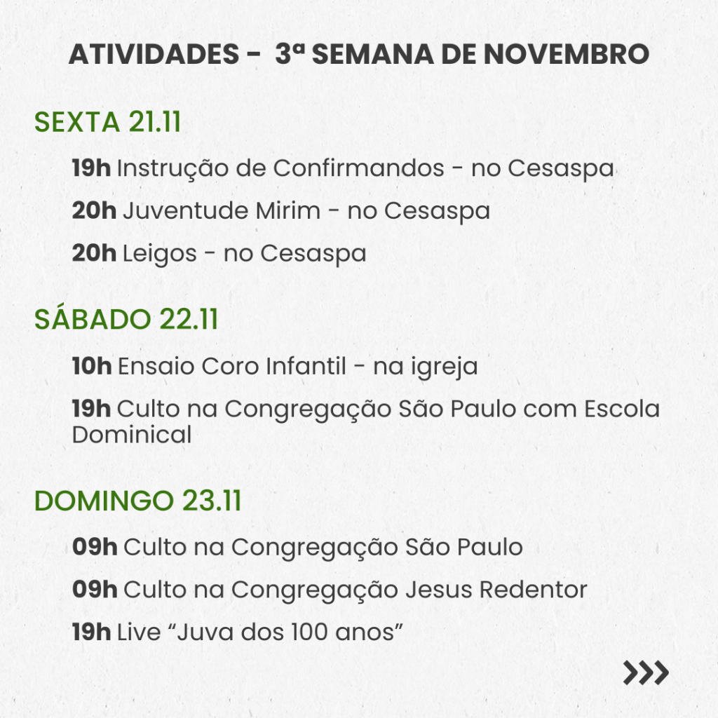 SEMANAL – 3ª SEMANA DE NOVEMBRO
