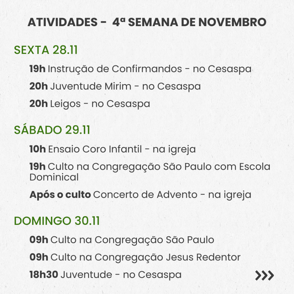 SEMANAL – 4ª SEMANA DE NOVEMBRO
