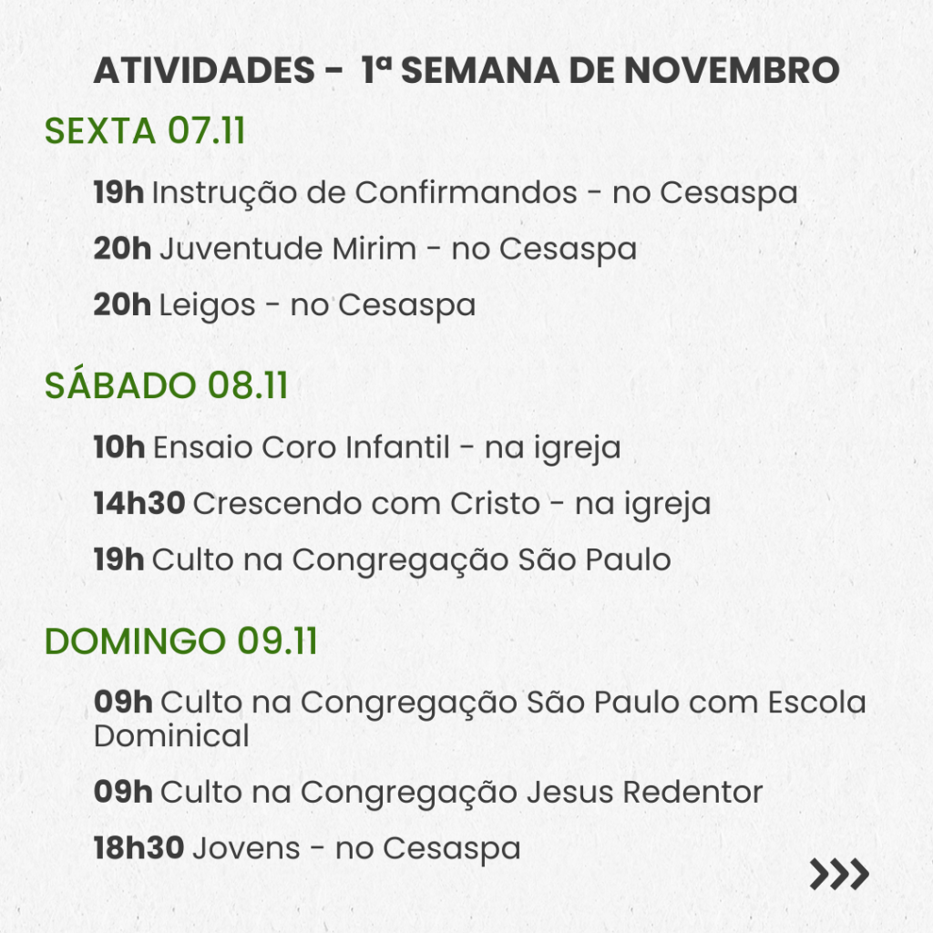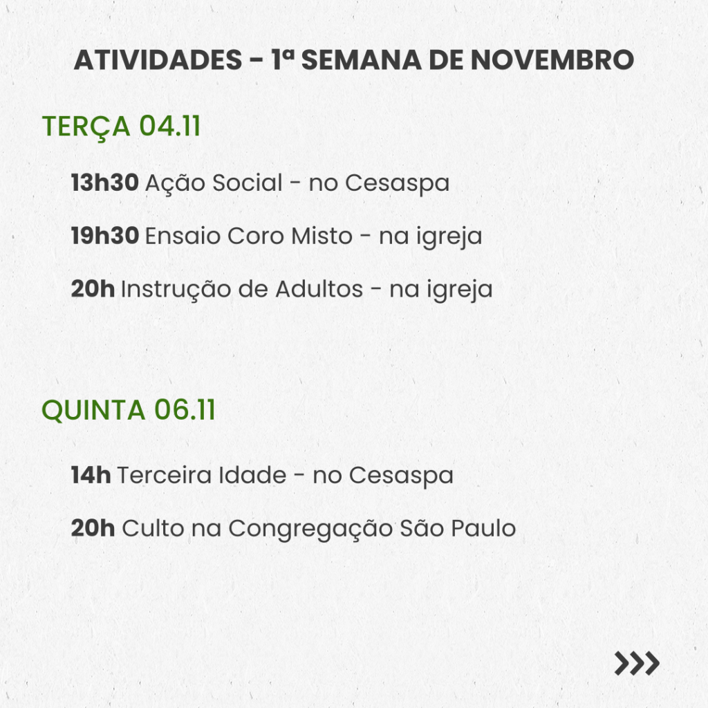 SEMANAL – 1ª SEMANA DE NOVEMBRO