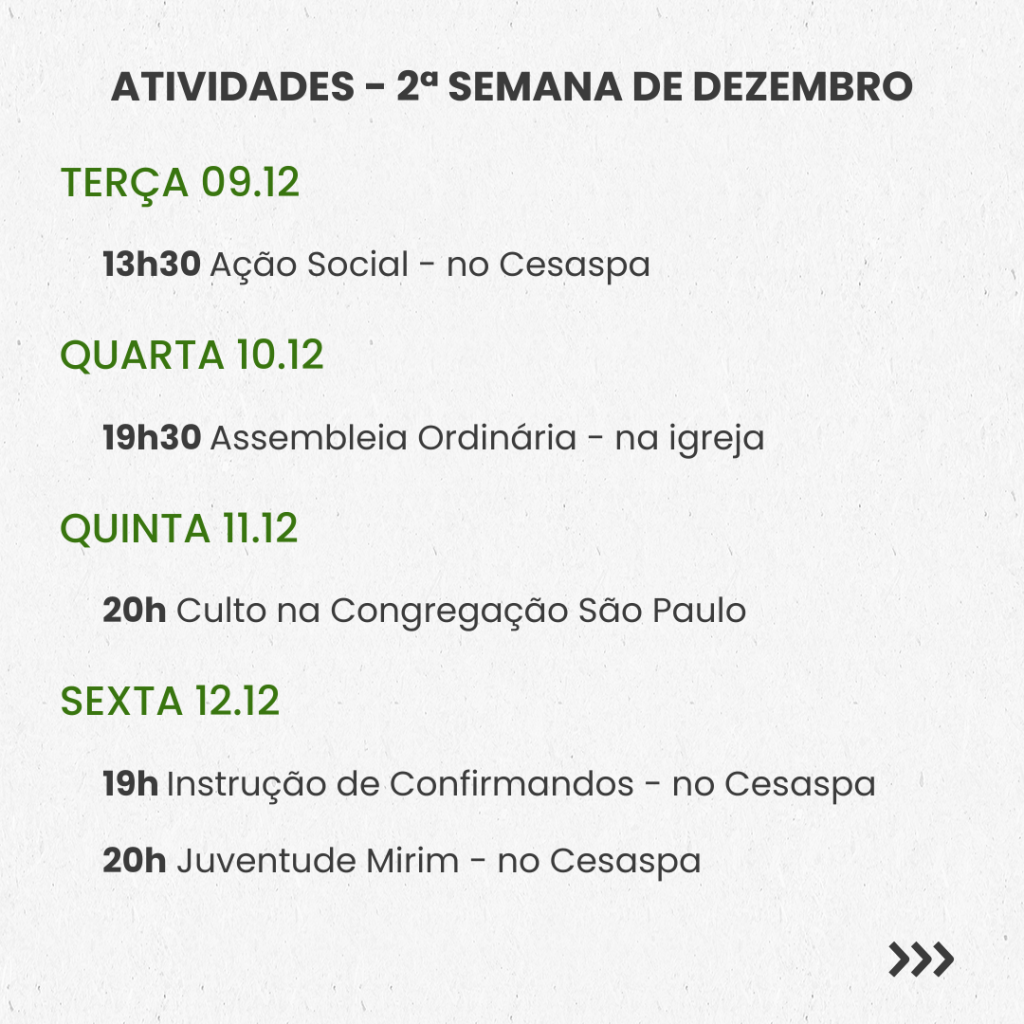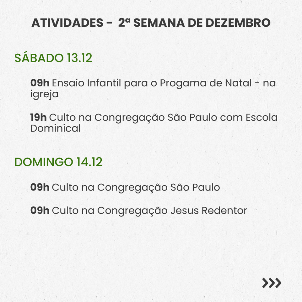 SEMANAL – 2ª SEMANA DE DEZEMBRO