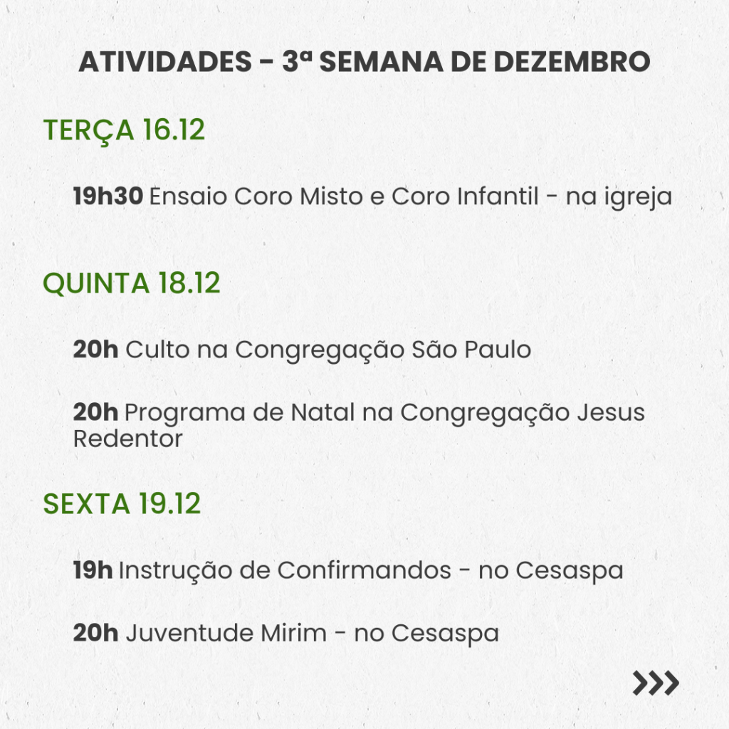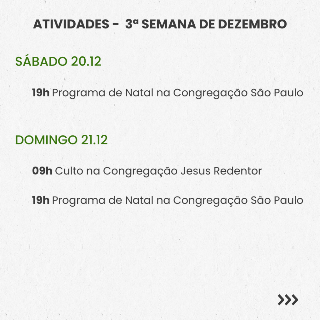 SEMANAL – 3ª SEMANA DE DEZEMBRO