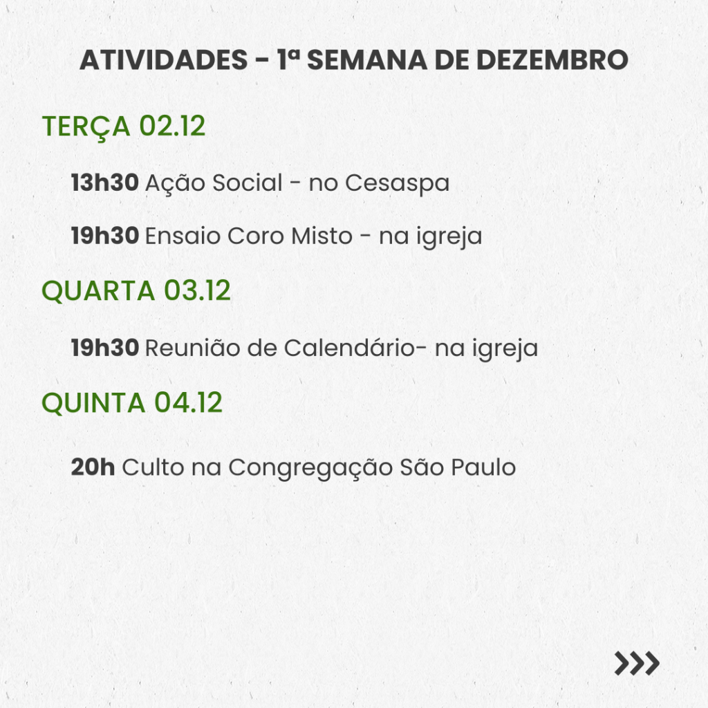 SEMANAL – 1ª SEMANA DE DEZEMBRO