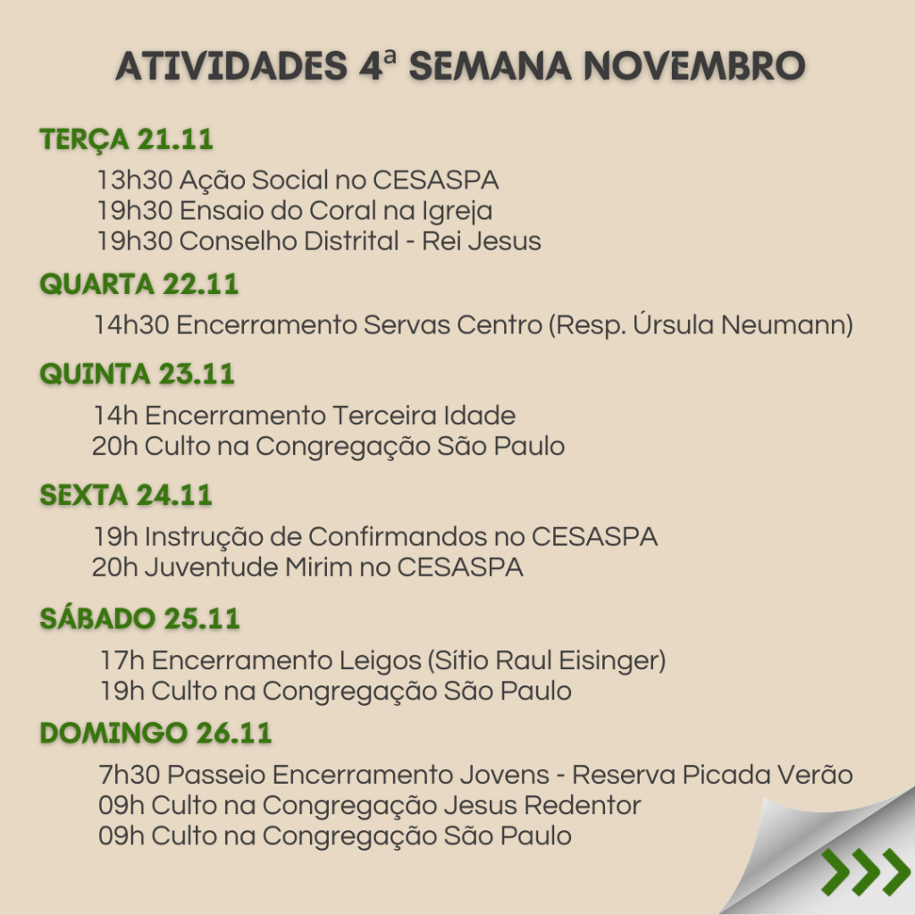 Leia no link abaixo a mensagem do Pastor Marcos Schmidt, que foi divulgada nos cultos do 1º Domingo de Advento: