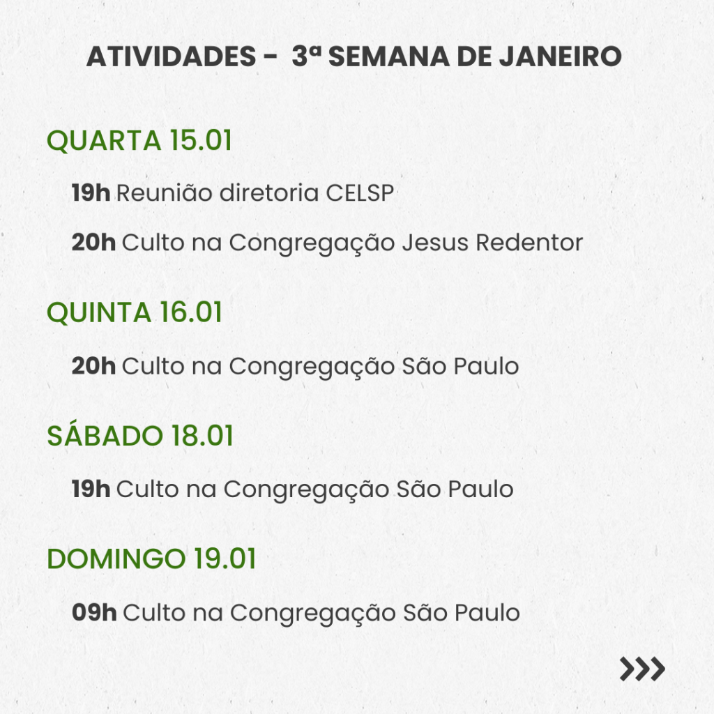 Qualquer urgência ou necessidade, pedimos que observem na agenda acima e contatem o pastor que estará disponível.