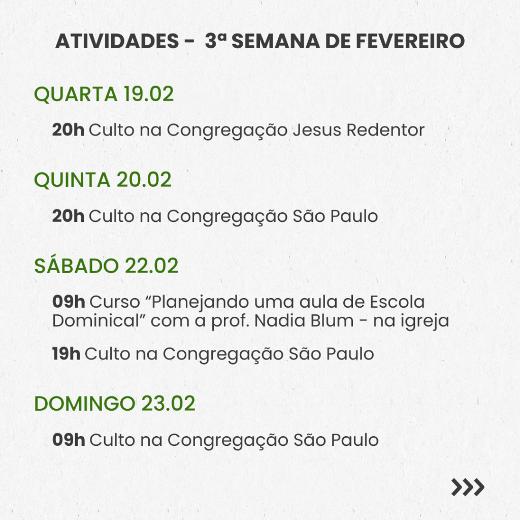 SEMANAL – 3ª SEMANA DE FEVEREIRO