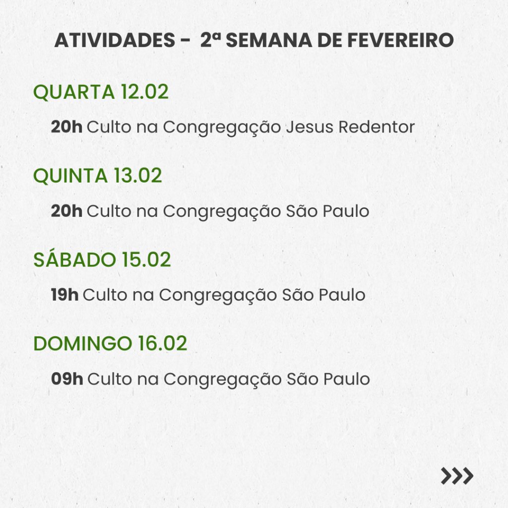 SEMANAL – 2ª SEMANA DE FEVEREIRO