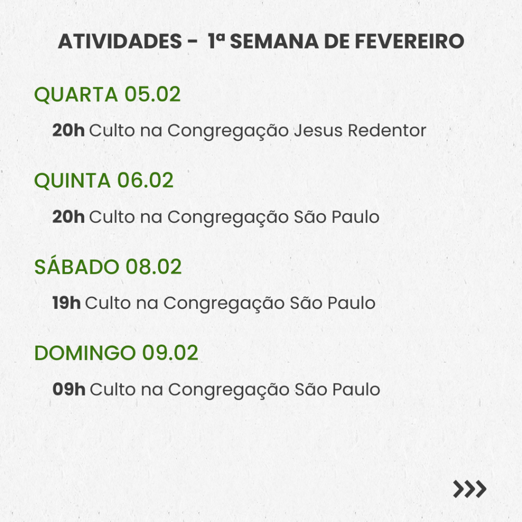 SEMANAL – 1ª SEMANA DE FEVEREIRO