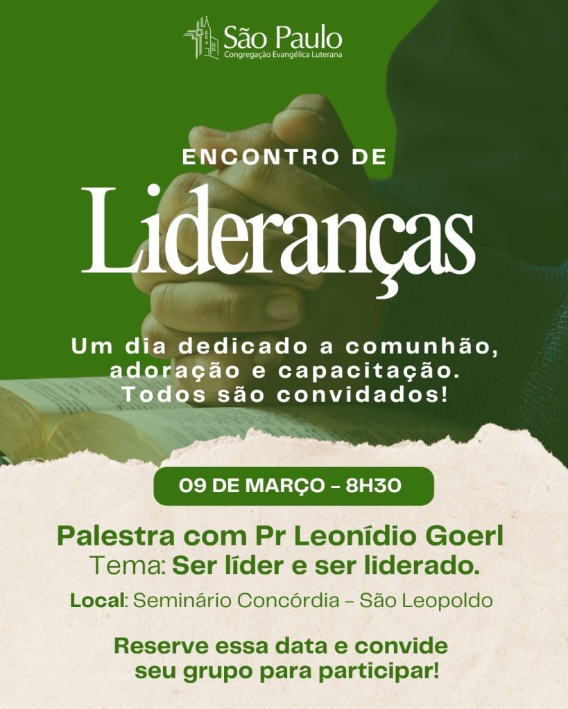Temos um convite muito especial: Encontro de Lideranças, para todos que desejam iniciar o ano se preparando para servir. Em breve enviaremos mais detalhes.