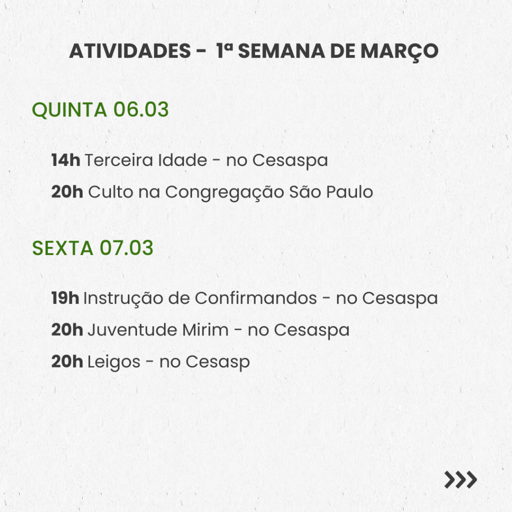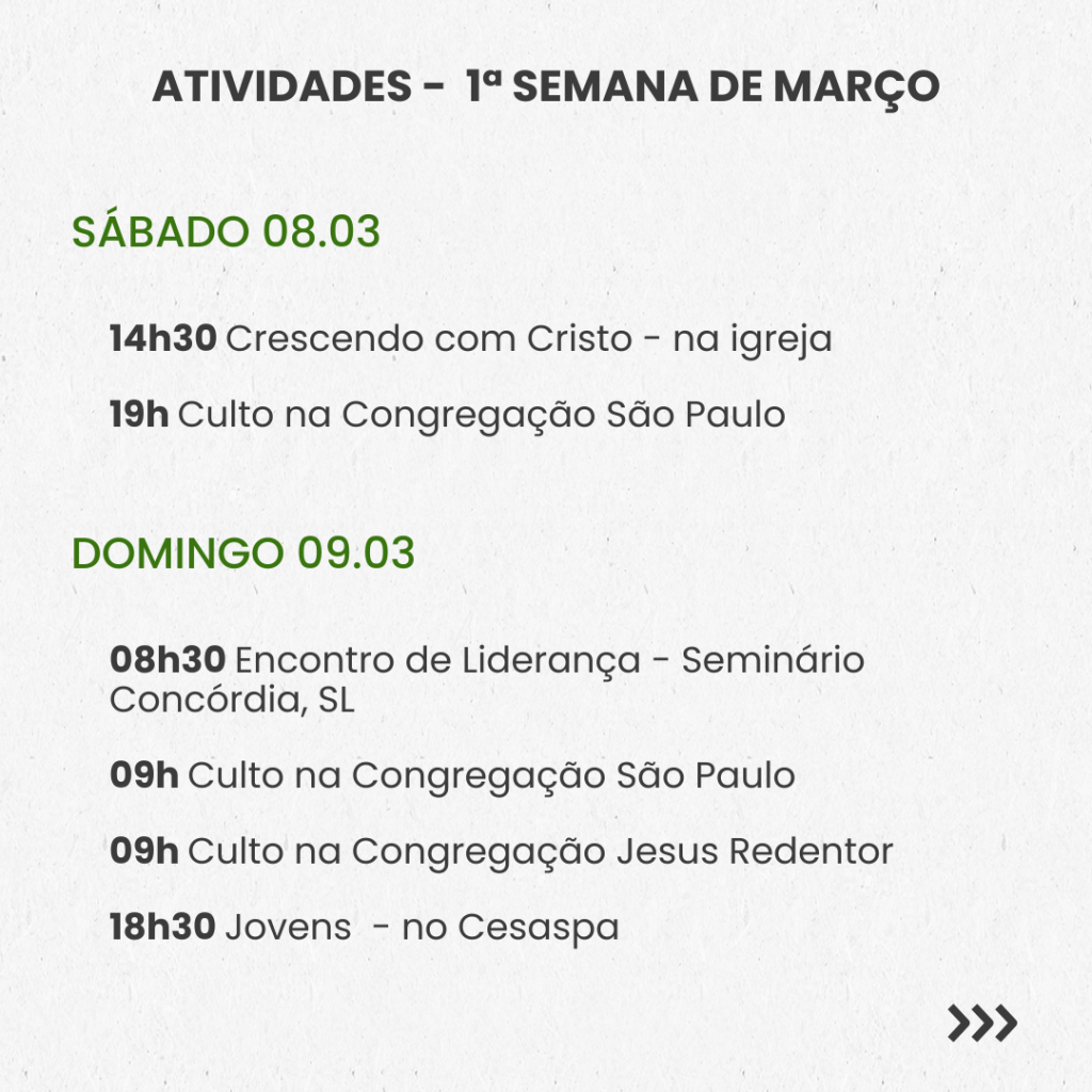 SEMANAL – 1ª SEMANA DE MARÇO