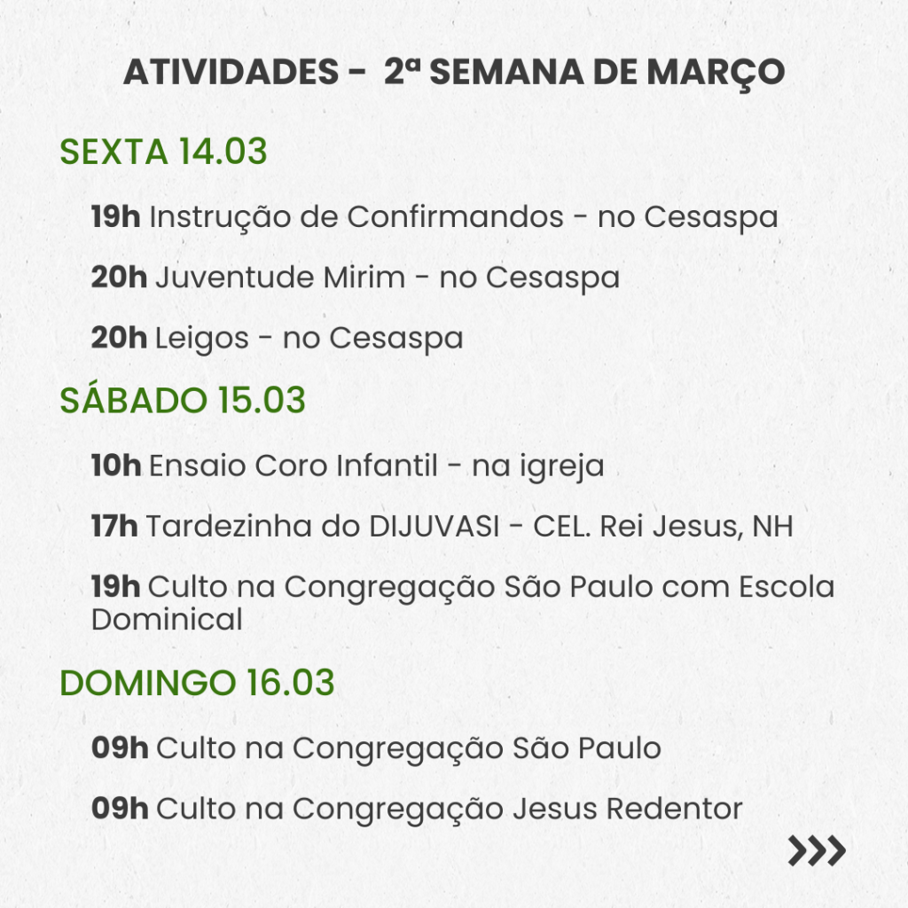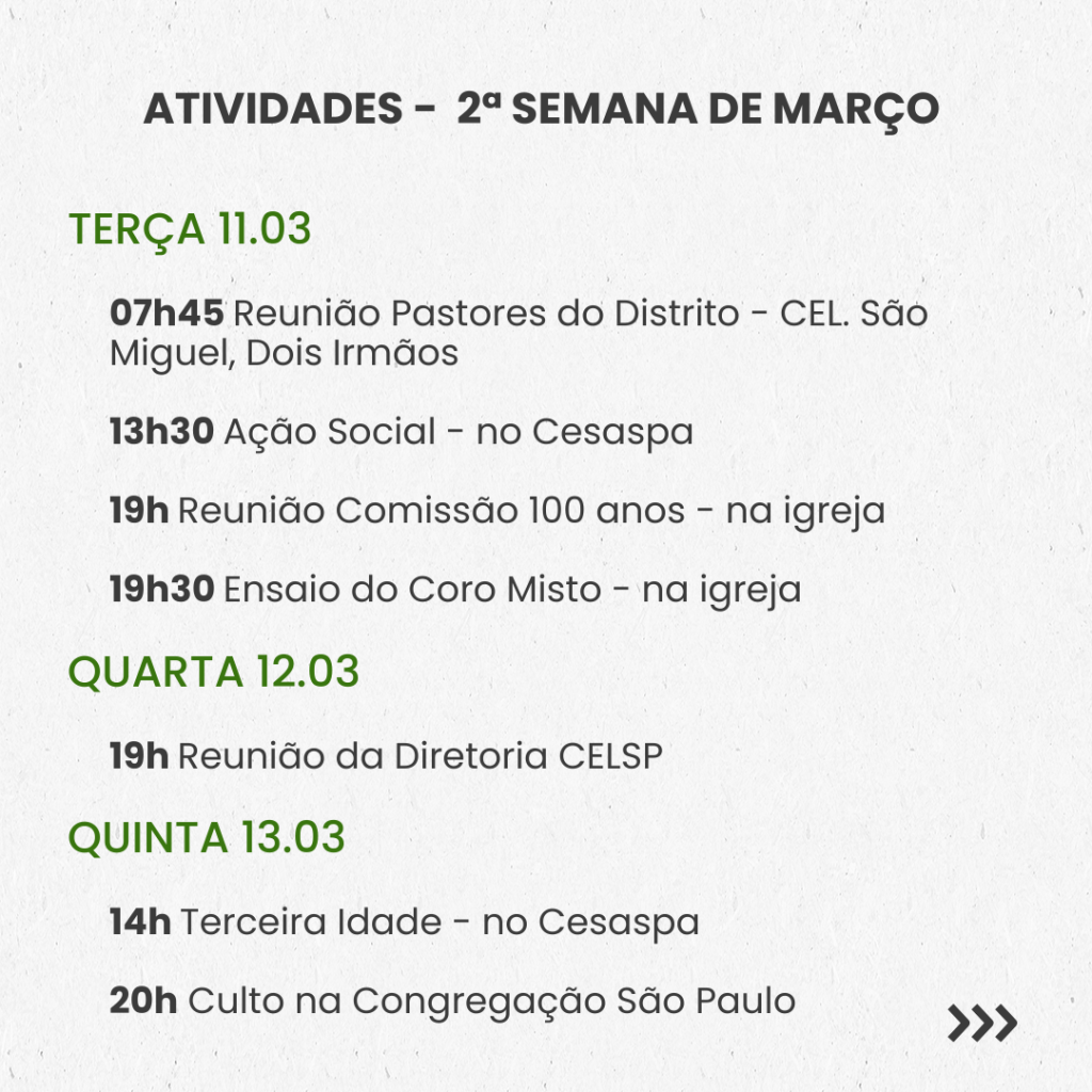 SEMANAL – 2ª SEMANA DE MARÇO