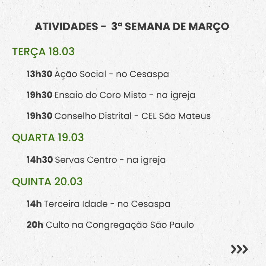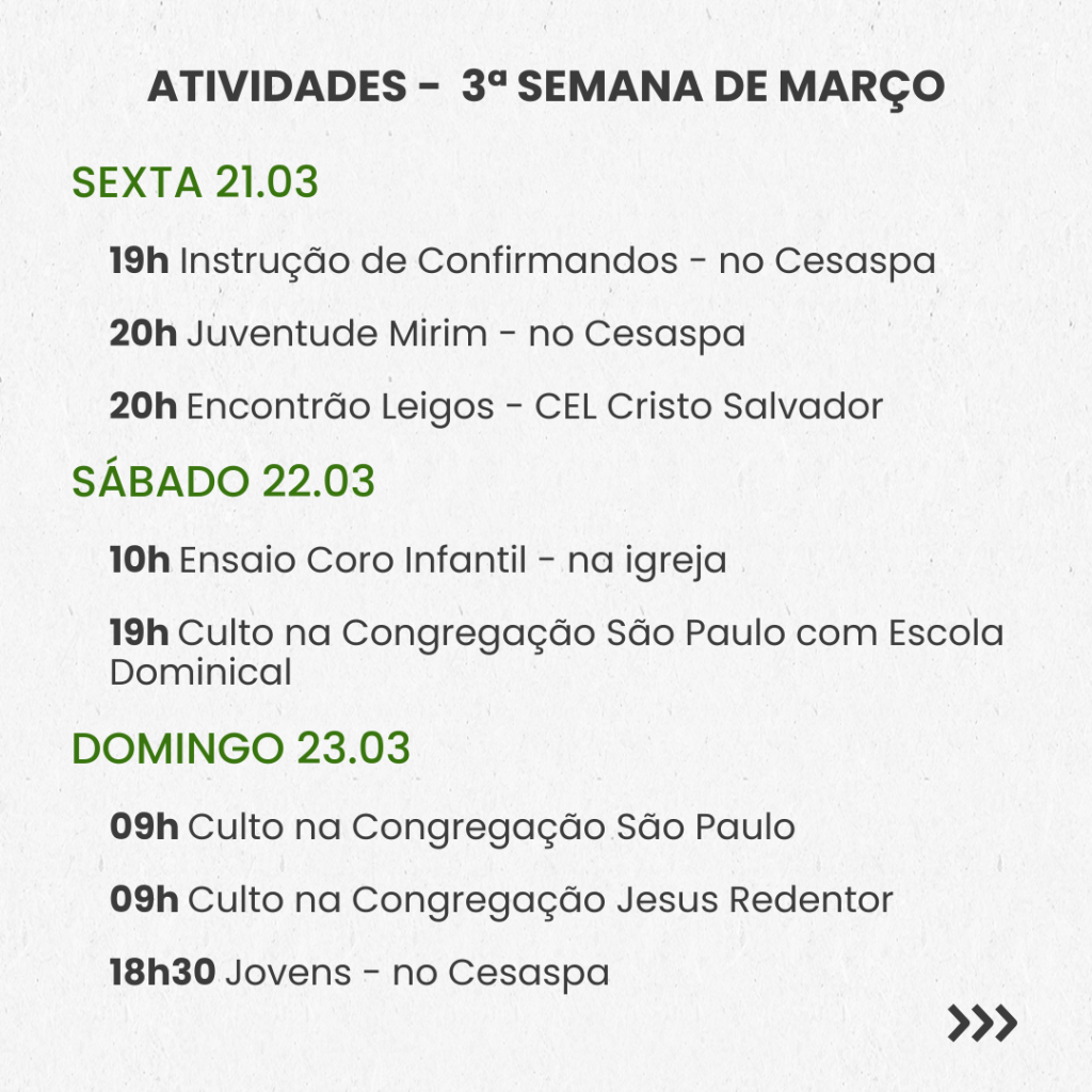 SEMANAL – 3ª SEMANA DE MARÇO