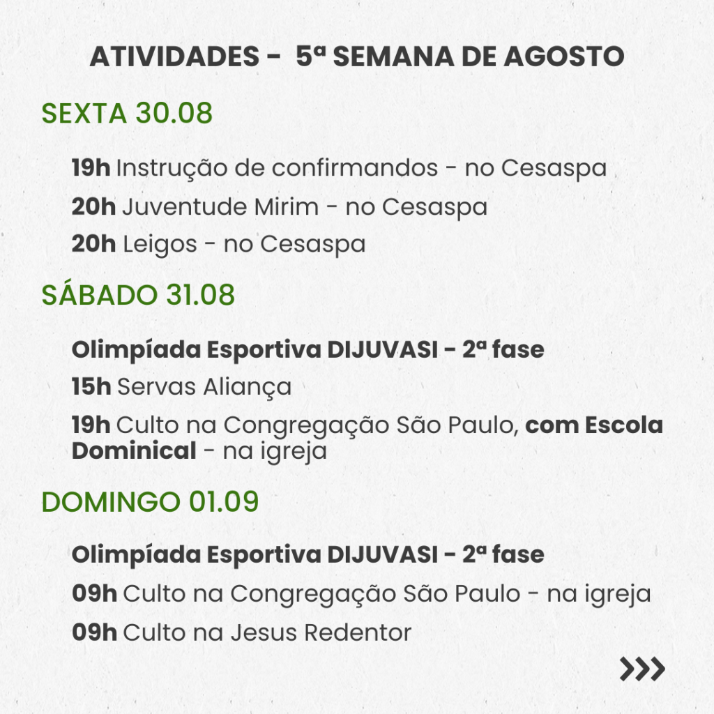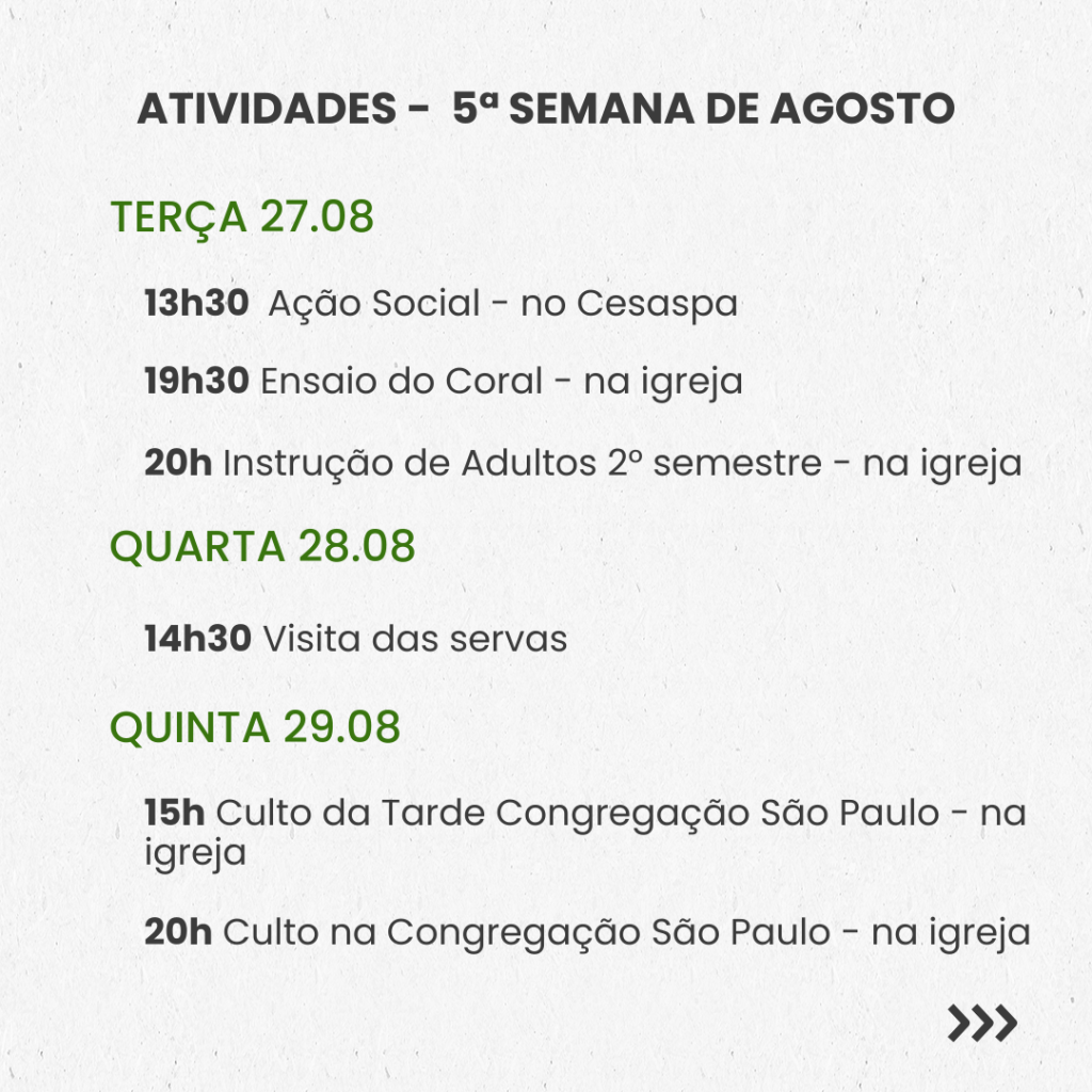 Semanal – 5ª SEMANA DE AGOSTO