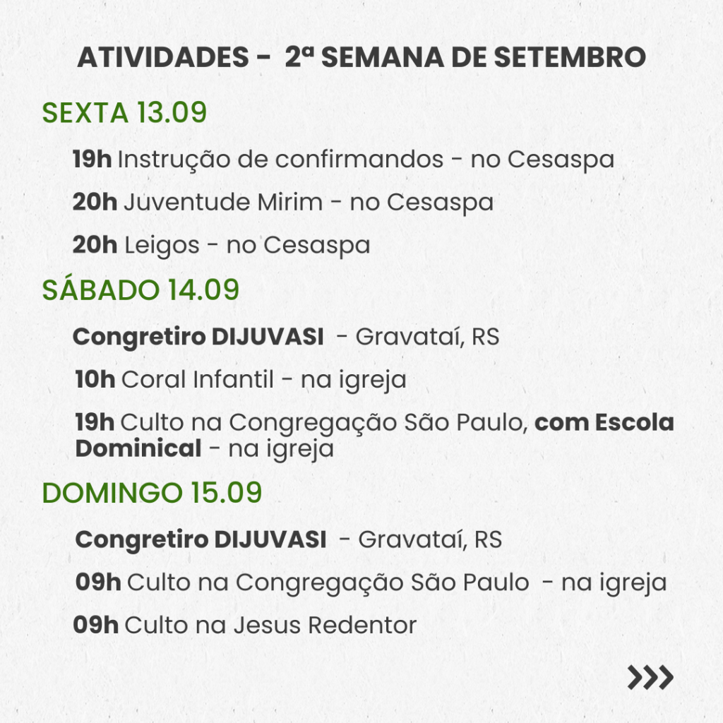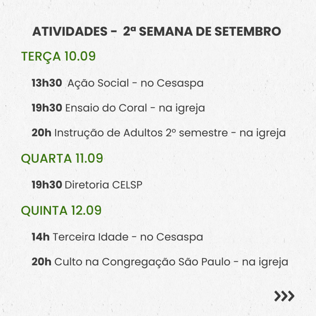 Semanal – 2ª SEMANA DE SETEMBRO