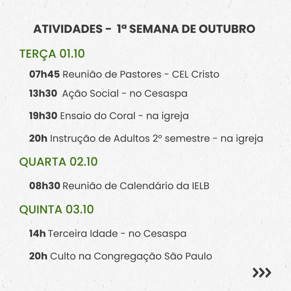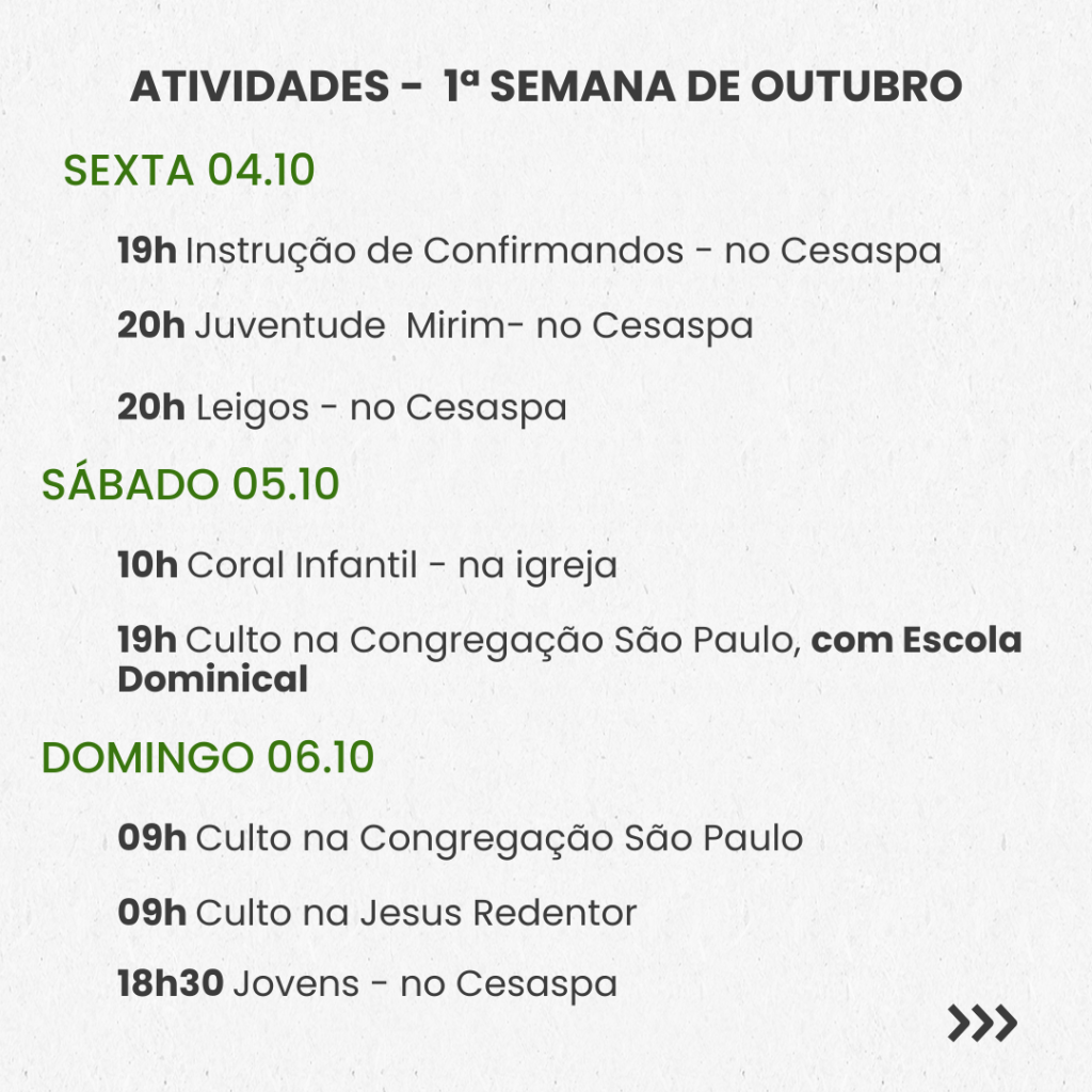 Semanal – 1ª SEMANA DE OUTUBRO