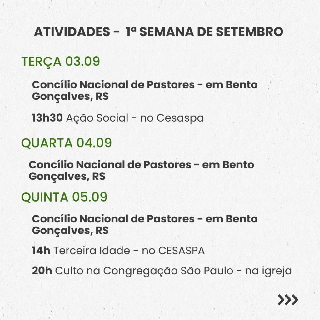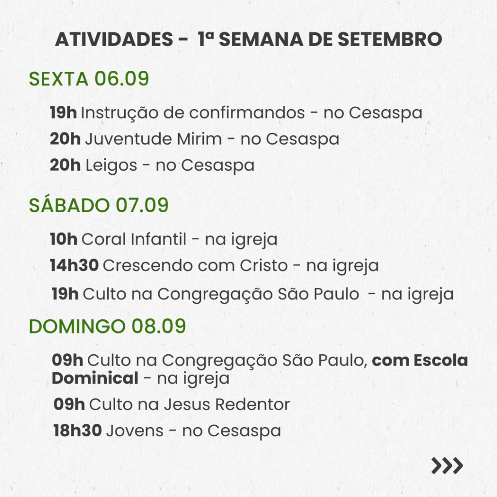 Semanal – 1ª SEMANA DE SETEMBRO