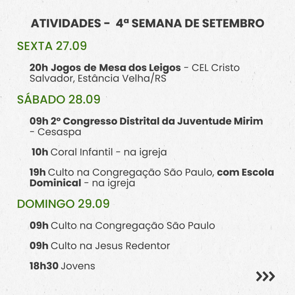 Semanal – 4ª SEMANA DE SETEMBRO