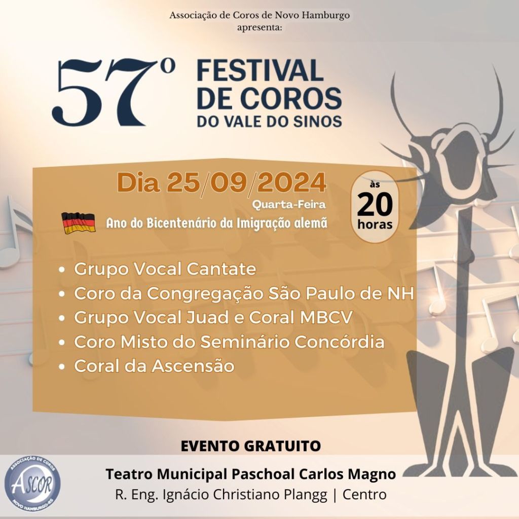 Coral da nossa comunidade convida para a sua apresentação no 57° Festival de Coros do Vale do Sinos