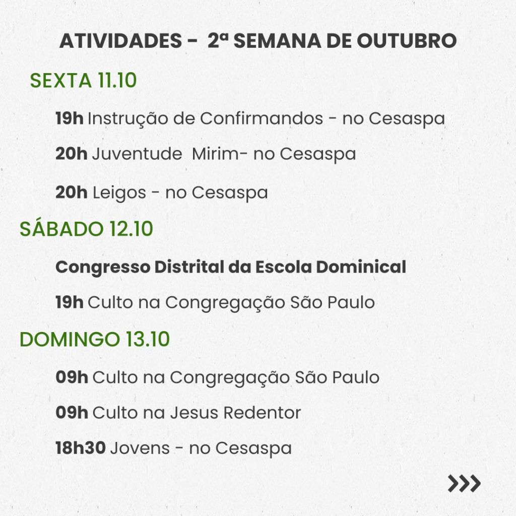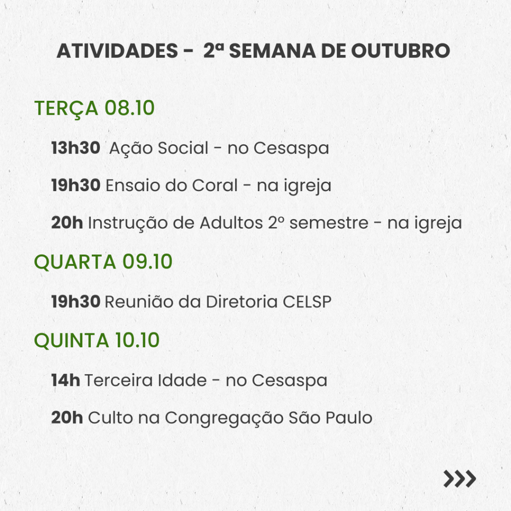 Semanal – 2ª SEMANA DE OUTUBRO