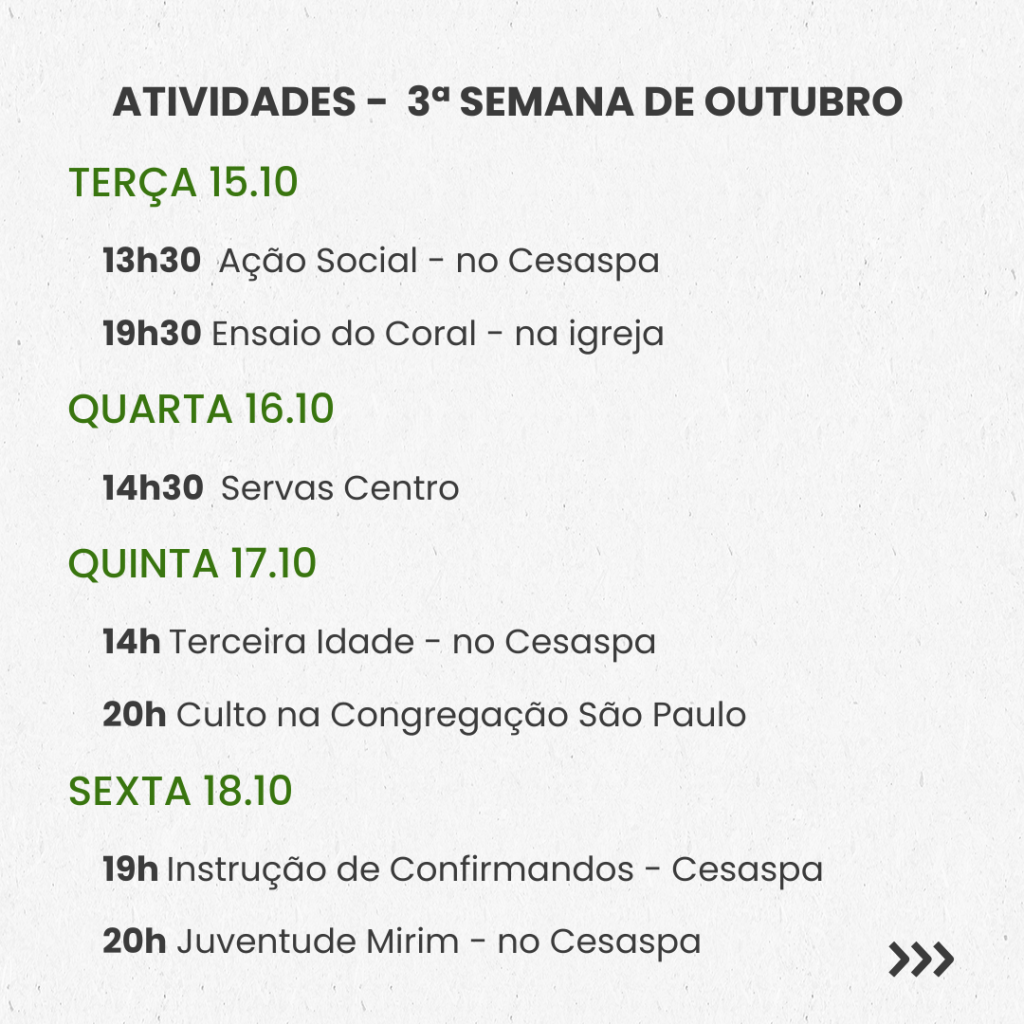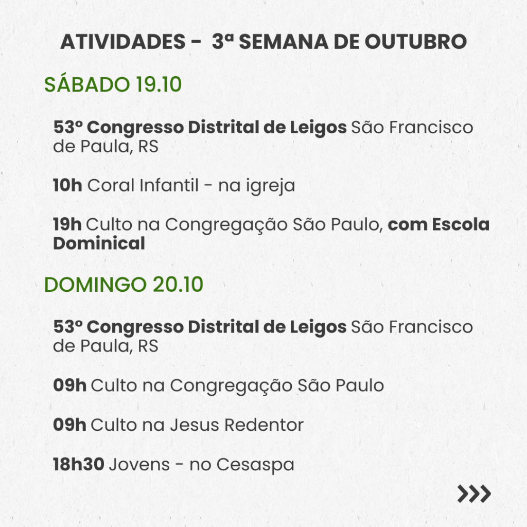 Semanal – 3ª SEMANA DE OUTUBRO