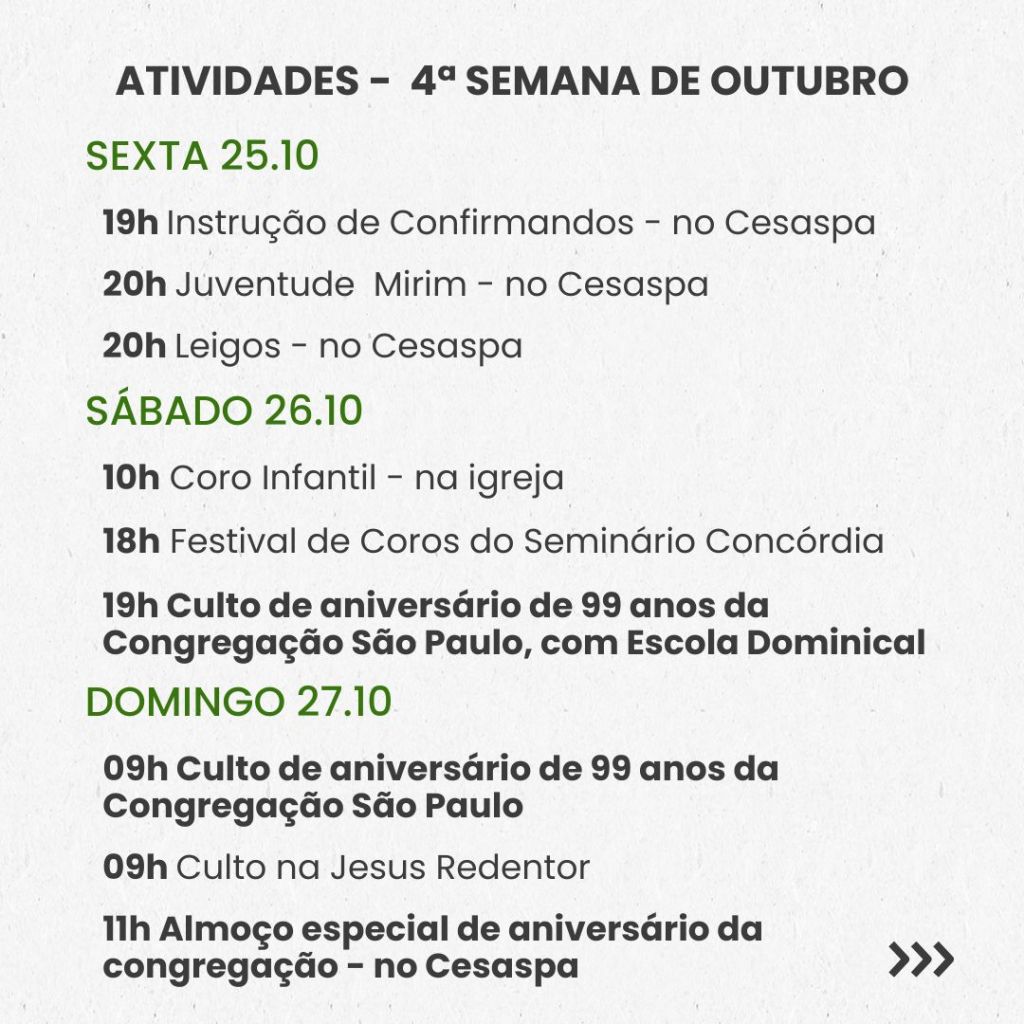 Semanal – 4ª SEMANA DE OUTUBRO