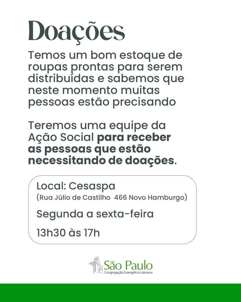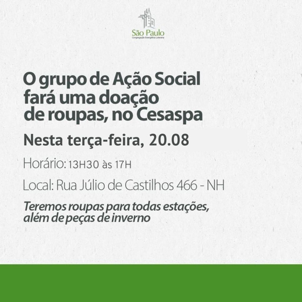 Dia 20/08, doação de roupas no Cesaspa