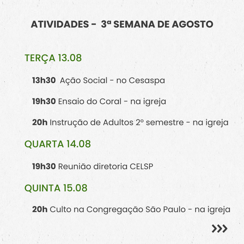 Está disponível na recepção dos cultos a lista onde você pode incluir o seu nome e solicitar os seus envelopes de oferta para o ano. Após preenchido, a Secretária providenciará os envelopes e você poderá retirá-los no próximo culto.